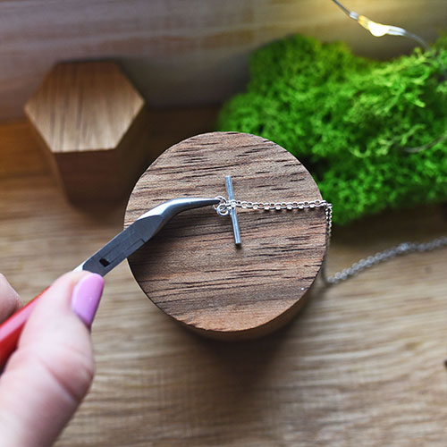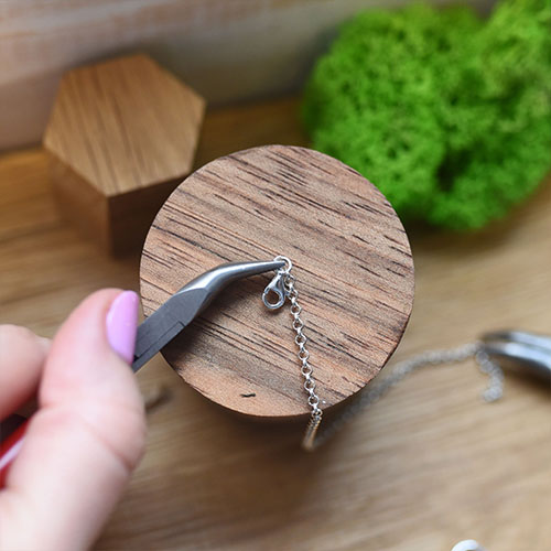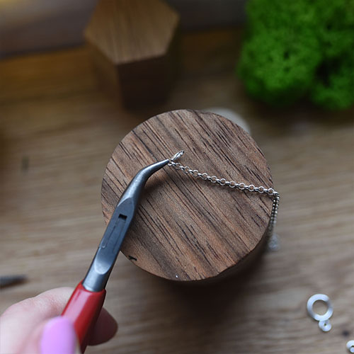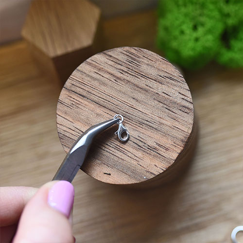 Do niektórych zapięć potrzebujemy dokupić ogniwka. Wybieramy te otwierane, które odginamy za pomocą szczypców jubilerskich lub nawet pensety i zakładamy na kółeczko przy zapięciu. Ich wielkość zależy od Waszego gustu - należy jedynie pamiętać, by były z grubszego drutu, co zapobiega ewentualnemu odpięciu łańcuszka od zapięcia. Na ogniwko zakładamy też łańcuszek, do którego przypinamy zapięcie. Po tych dwóch prostych krokach bransoletka czy naszyjnik jest gotowy.
