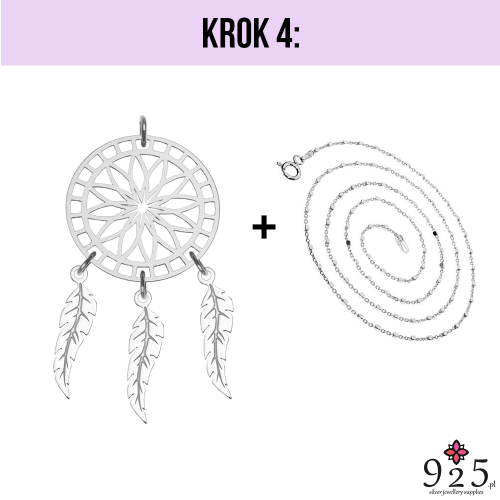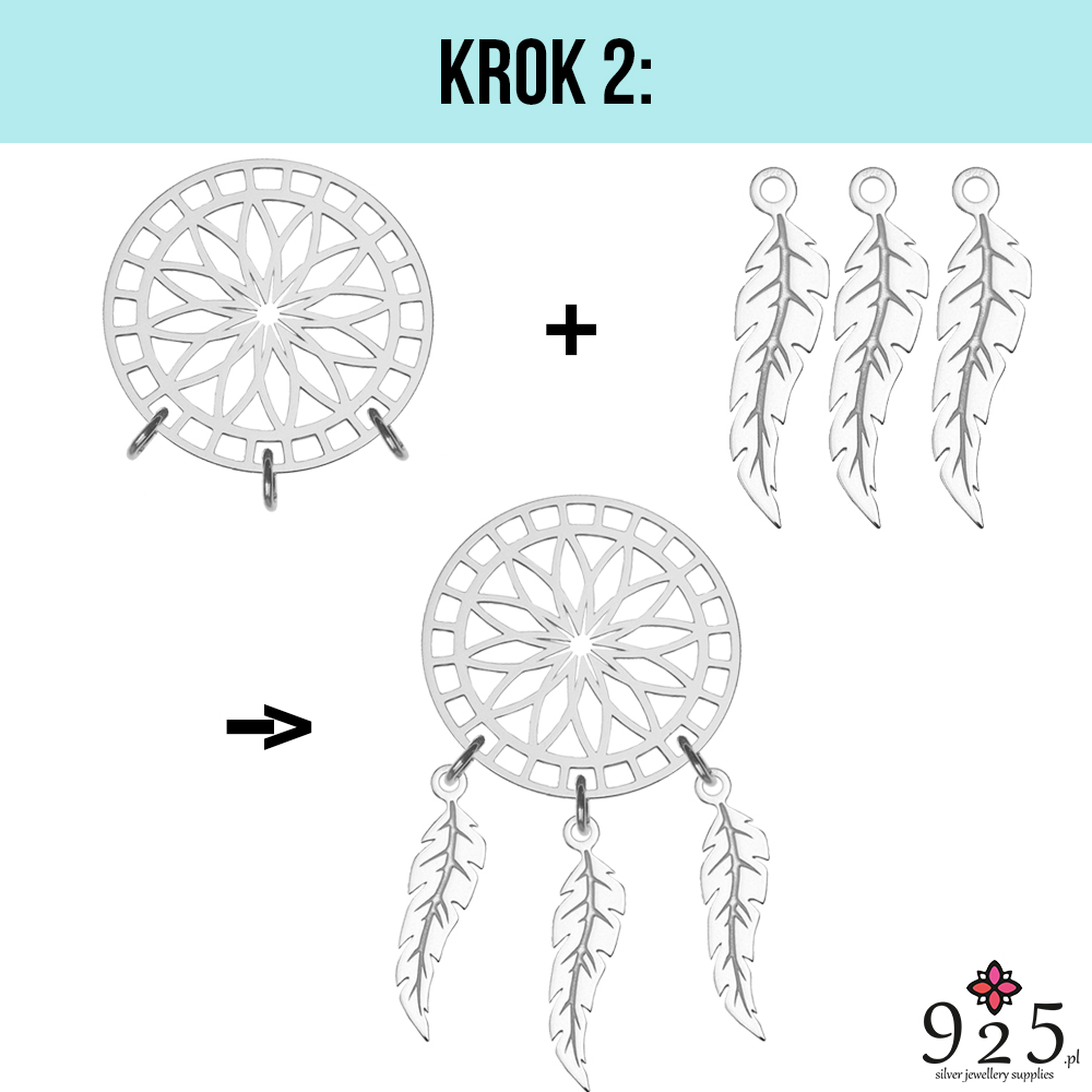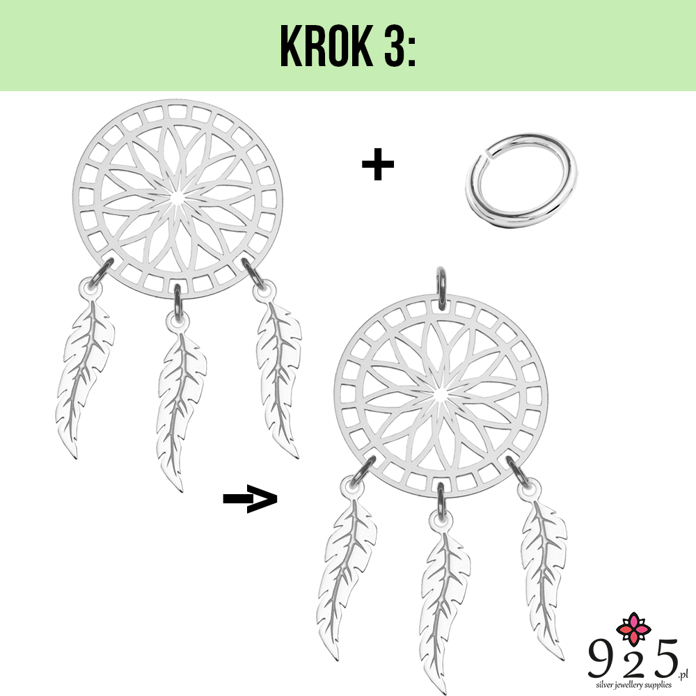 Na ogniwka załóż zawieszki piórka i wtedy również za pomocą narzędzia zamknij ogniwka, by nie spadały.