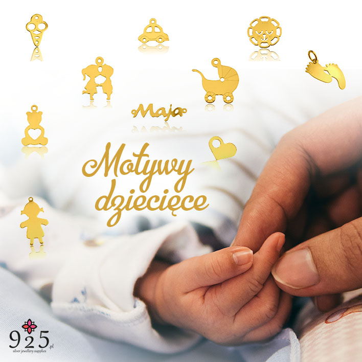 Korzystając z naszych produktów, można skonstruować bransoletkę lub naszyjnik z zawieszkami w dziecięcym klimacie, budzącymi miłe skojarzenia - jak wózeczek, para malutkich stópek, samochodzik czy misiu. Wszystko w malutkim, uroczym rozmiarze, w wersji srebrnej lub pozłacanej (żółtym lub różowym złotem).