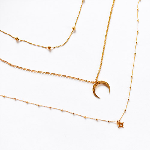 Dobierz je wyłącznie według swojego gustu - najpopularniejsze są jednak księżyce, gwiazdy, słońca lub minimalistyczne wzory, jak trójkąty. Ich wielkość i kształty możemy stopniować - przy szyi najmniejsze, środkowy jest centralnym punktem dekoltu, a na najdłuższym łańcuszku pasuje podłużny lub trójkątny kształt.