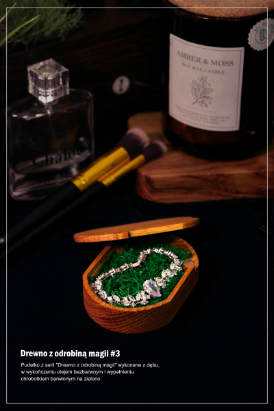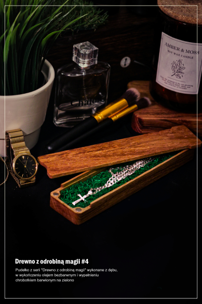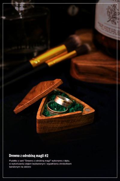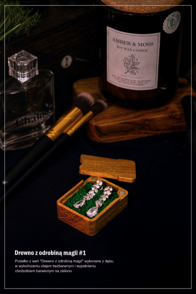 Kolekcja “Drewno z odrobiną magii” to opakowania zasuwane na magnes spełniające potrzeby klientów - magnesy solidnie trzymają zapięcie, a otwieranie poprzez zasuwaną płytkę odbywa się płynnie ukazując kolejne detale ukrytej wewnątrz biżuterii niczym podnosząca się kurtyna. Zastosowanie magnesów również daje bardzo satysfakcjonujące uczucie podczas zamykania gdzie domknięcie dokonuje się samoistnie, niemal magicznie poprzez przyciąganie magnesów