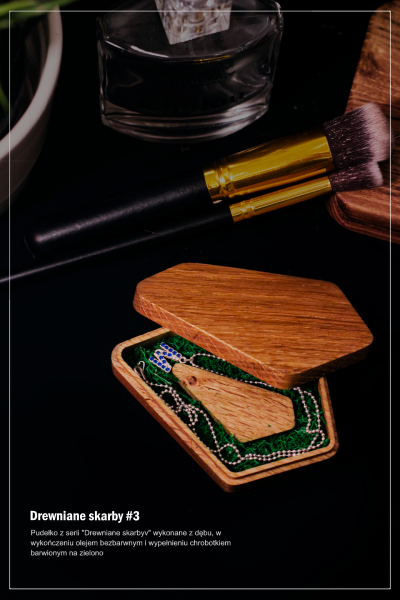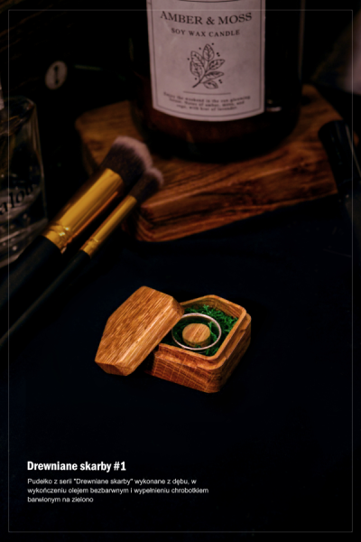 Drewniane skarby to koncepcja na opakowania, które charakteryzują się znanym i prostym typem opakowań z mankietem. Wnoszą one jednak nietypowy kształt nawiązujący do kamieni jubilerskich, które mają wyróżnić je od innych opakowań na rynku, a jednocześnie zachęcać do kolekcjonowania jak prawdziwe kamienie. Dodatkowo w środku denka możemy odnaleźć wysepkę pozwalającą na umieszczenie dodatkowego grawerunku na specjalne życzenie klienta. To rozwiązanie pozwala jeszcze bardziej spersonalizować opakowanie i zaskoczyć obdarowanego.
